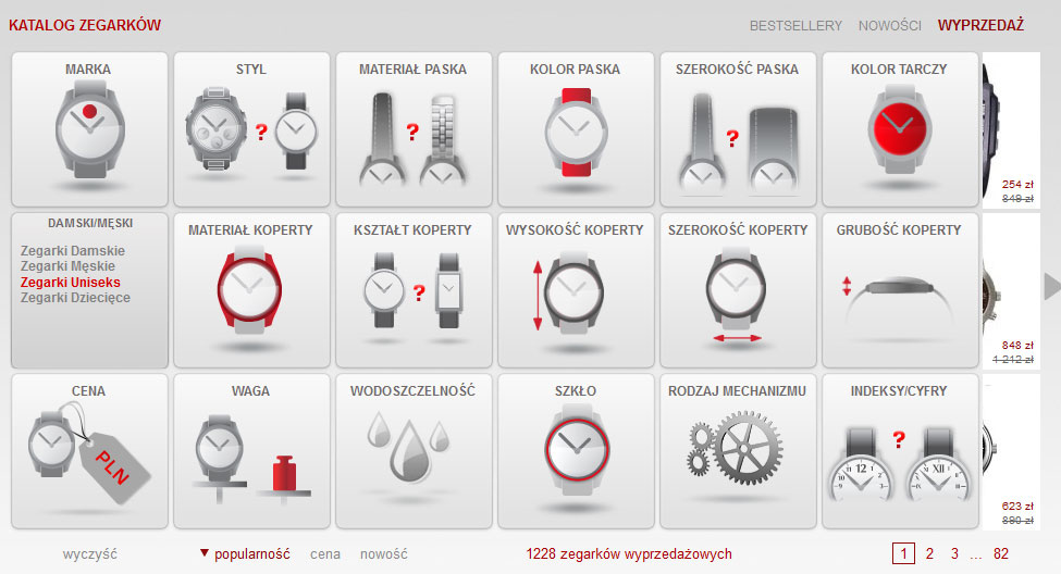 Nie chcąc czekać tygodnia powróciłem na ich stronę WWW. Muszę przy tej okazji przyznać, ze jako jedni z nielicznych mają genialną wyszukiwarkę zegarków – można je szukać nawet po kształcie koperty czy jej wielkości. To bardzo ułatwia poszukiwania szczególnie jak nie do końca się jest pewnym co wybrać.