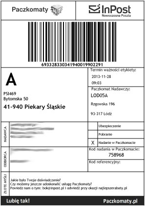 etykieta nadawcza do paczkomatu InPost